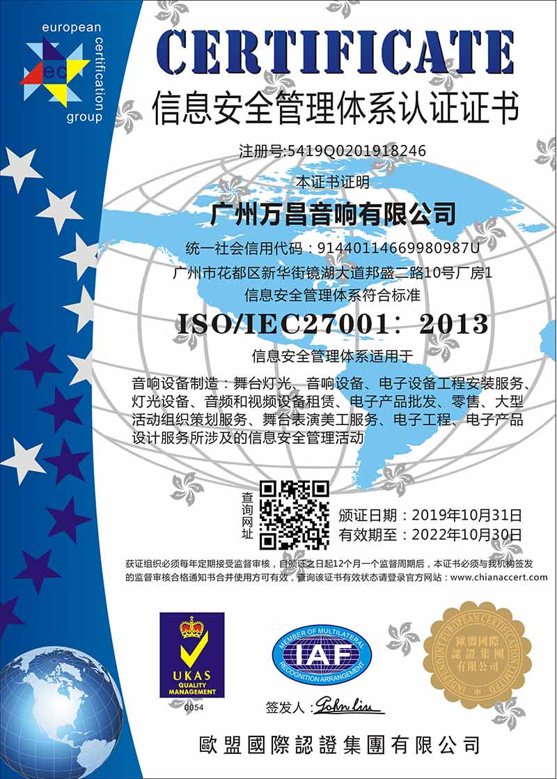 爵士龍-信息安全管理體系認證證書